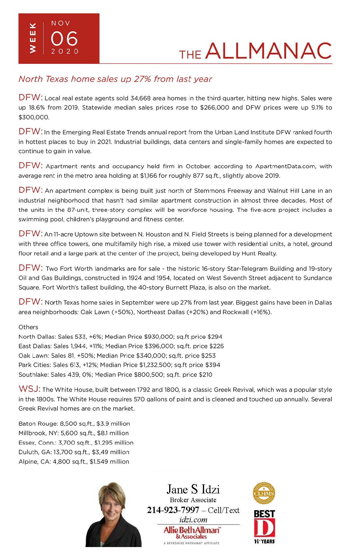 11-06-20 The ALLMANAC – No Texas Home Sales up 27%!