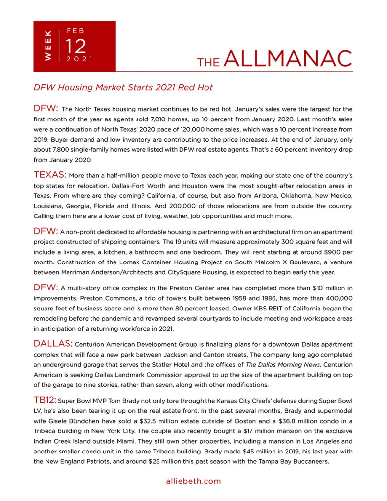Associate Broker, Allie Beth Allman & Associates, specializing in beautiful residential homes in the communities of the Park Cities (Highland Park and University Park) and Lake Forest, a gated community south of LBJ/635