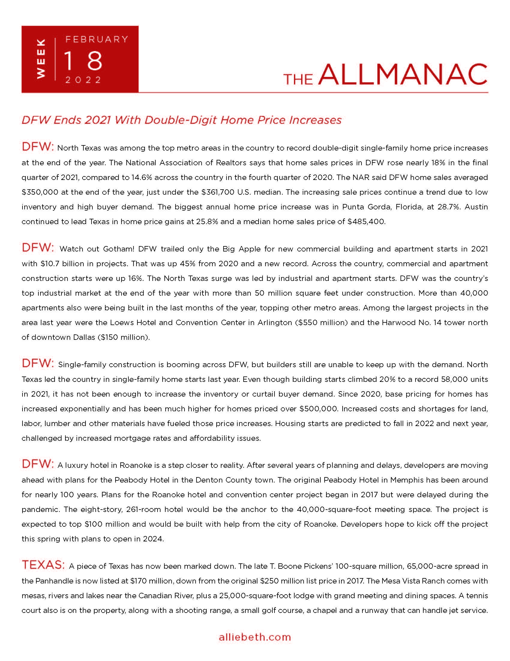 Associate Broker, Allie Beth Allman & Associates, specializing in beautiful residential homes in the communities of the Park Cities (Highland Park and University Park) and Lake Forest, a gated community south of LBJ/635