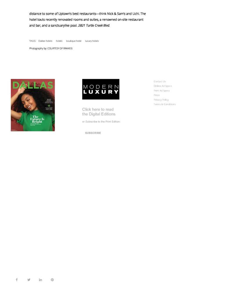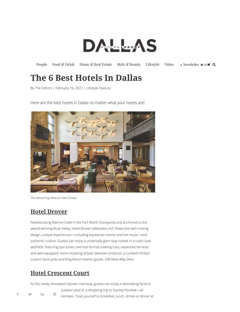 Dallas Modern Luxury’s THE 6 BEST HOTELS IN DALLAS