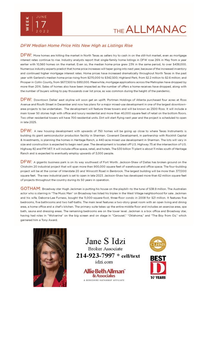 Associate Broker, Allie Beth Allman & Associates, specializing in beautiful residential homes in the communities of the Park Cities (Highland Park and University Park) and Lake Forest, a gated community south of LBJ/635