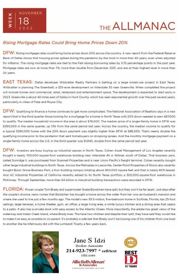 Associate Broker, Allie Beth Allman & Associates, specializing in beautiful residential homes in the communities of the Park Cities (Highland Park and University Park) and Lake Forest, a gated community south of LBJ/635
