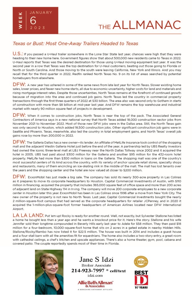 Associate Broker, Allie Beth Allman & Associates, specializing in beautiful residential homes in the communities of the Park Cities (Highland Park and University Park) and Lake Forest, a gated community south of LBJ/635