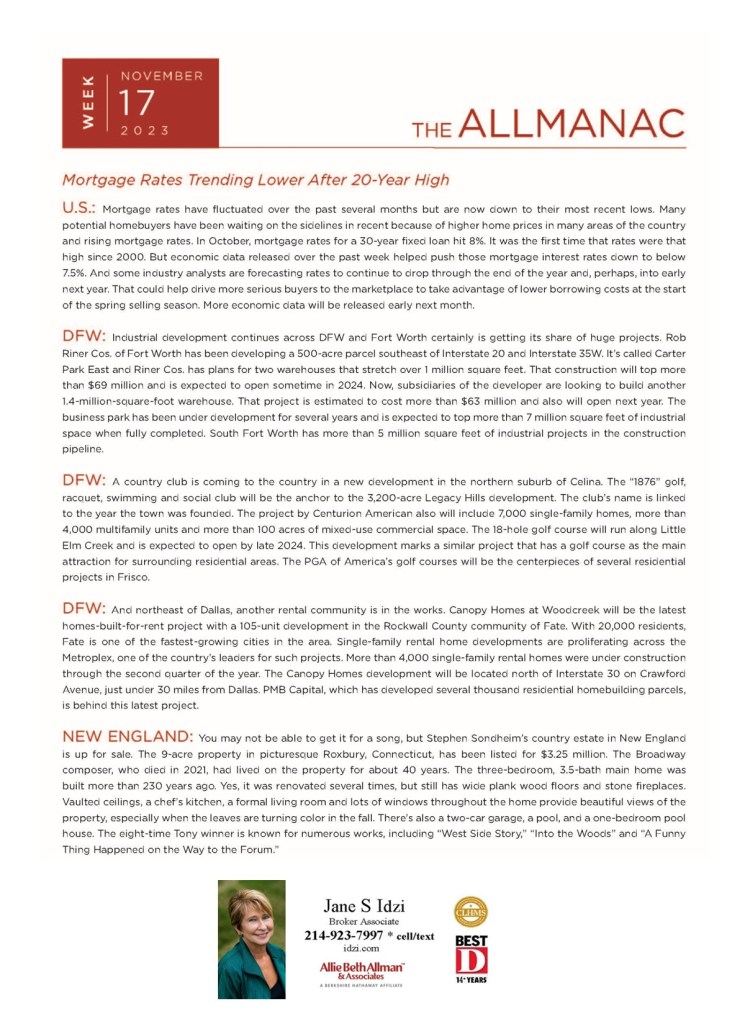 Associate Broker, Allie Beth Allman & Associates, specializing in beautiful residential homes in the communities of the Park Cities (Highland Park and University Park) and Lake Forest, a gated community south of LBJ/635